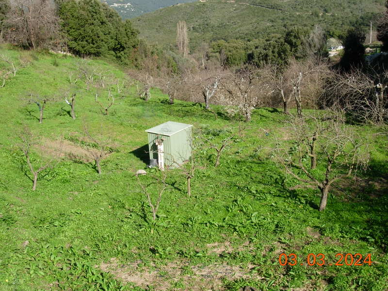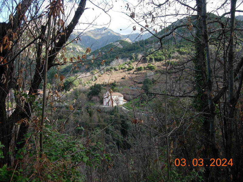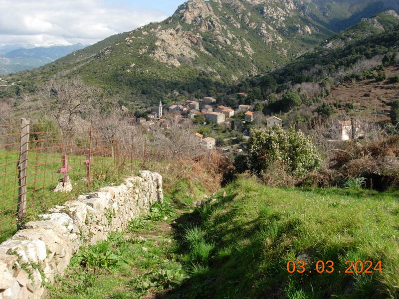le sommet, des châtaigniers, des noyers et un maquis dense ainsi que la