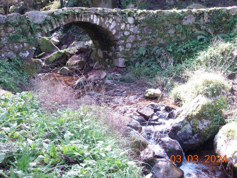 pique-nique : le pont génois où coule le ruisseau , instant de