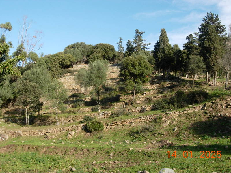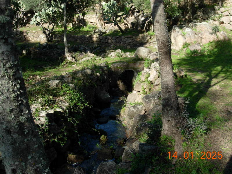Des clémentiniers, des orangers , des citronniers , des oliviers et de beaux cactus géants plantés en bordure du ruisseau et en espaliers ornent le site entouré lui-même de murs en pierre