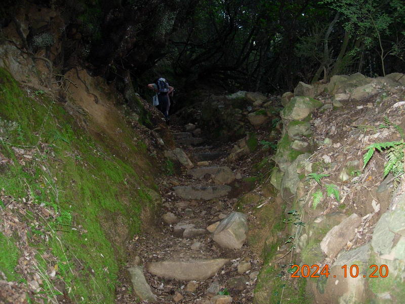 Bien abrité en sous-bois la plupart du temps , le sentier est bordé de murets en pierre recouverts de mousse , quelques champignons ,