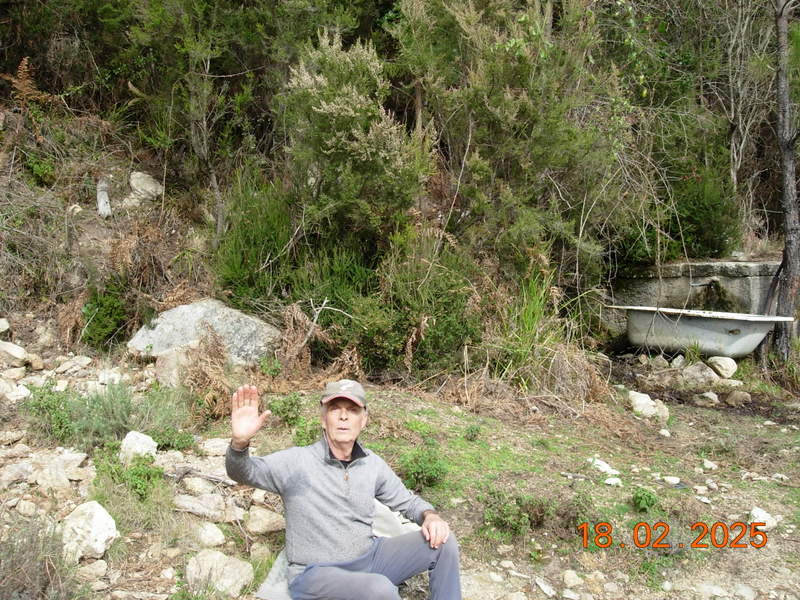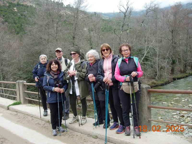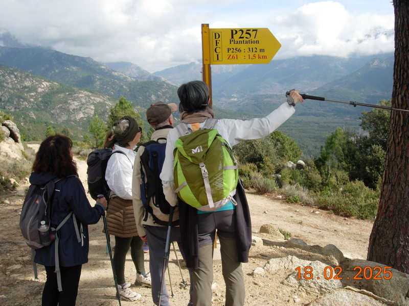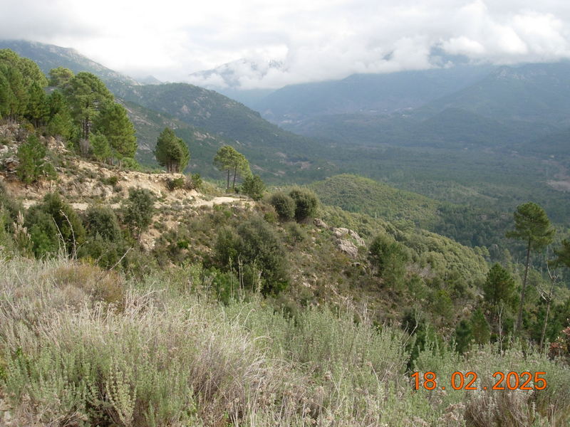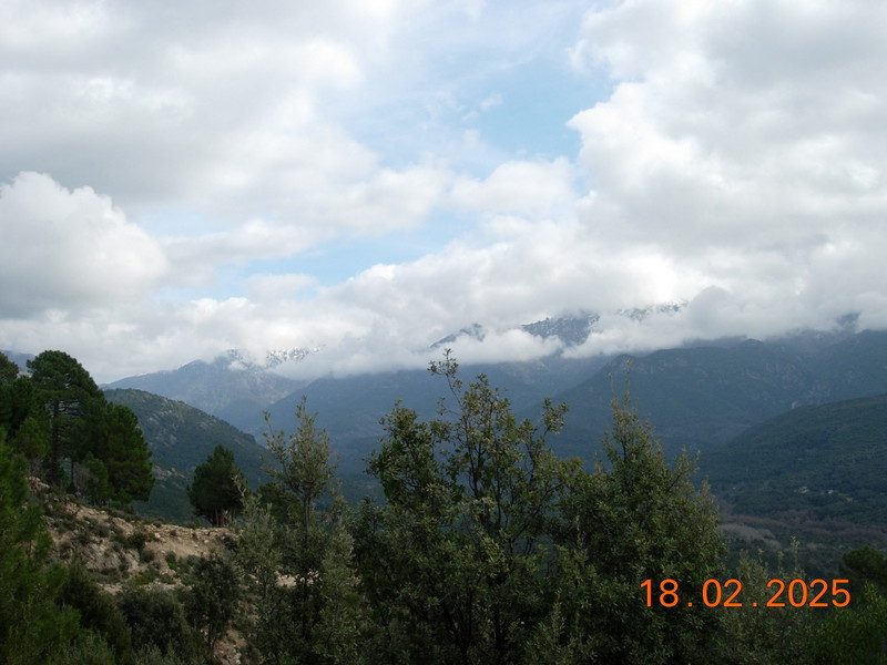 Après 1H30 de marche nos estomacs réclament famine et l' endroit idéal nous est apparu , en crêtes face au village de TAVERA , la punta ISA , le RENOSO dont les cimes sont enneigées