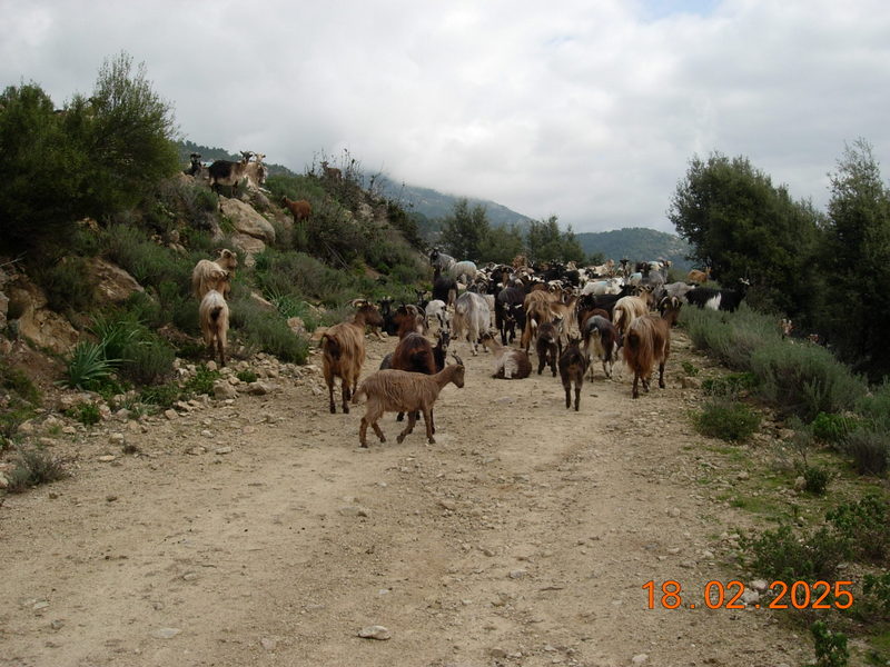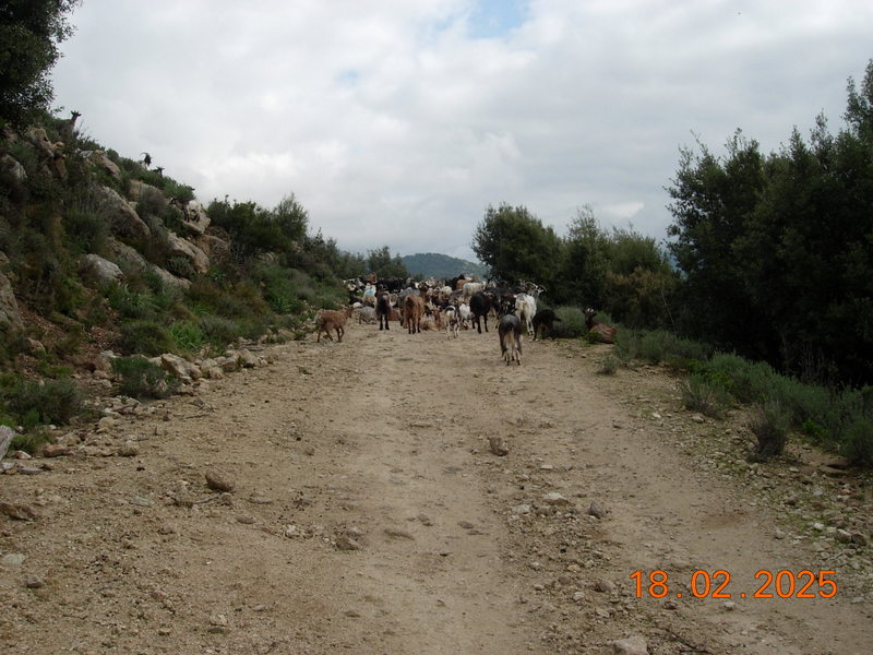 Au milieu de la piste, un troupeau impressionnant de 500 chèvres pas du tout effrayées par notre venue et bien gardé par un le chien de garde qui réclamait nos caresses