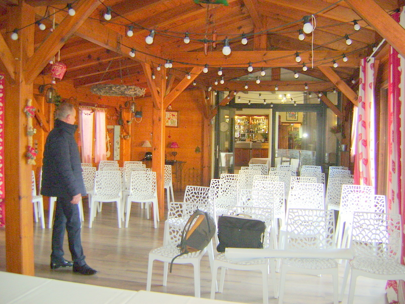 voit bientôt venir notre spécialiste de la sono et tous deux s'assurent que la salle de réunion est prête à nous recevoir.