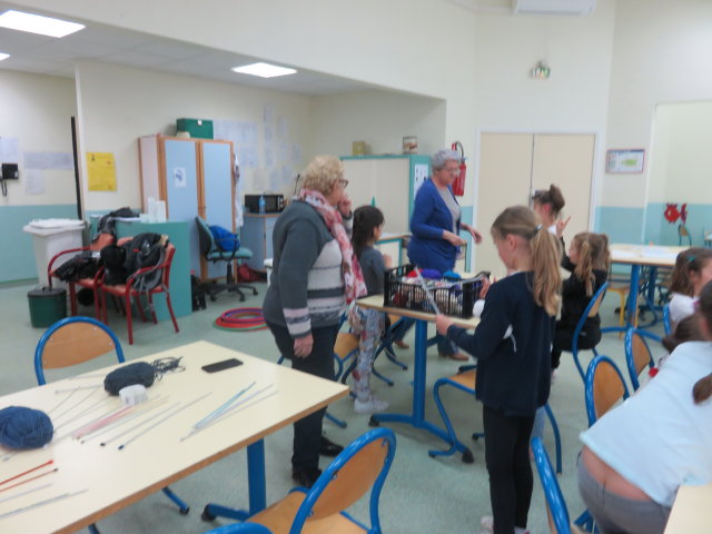 Nous avons été accueillies par 14 enfants de 7 à 12 ans (12 filles et 2 garçons) tous décidés à apprendre à tricoter. Après quelques essais